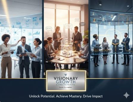 Visionary Growth Consultants was born from a powerful vision: to uplift the individuals and organizations that shape our economy and our society. We are a passionate team of coaches, but our passion is matched only by our precision. We exist to be the catalyst for your continuous growth, creating powerful ripple effects that drive progress and redefine success.